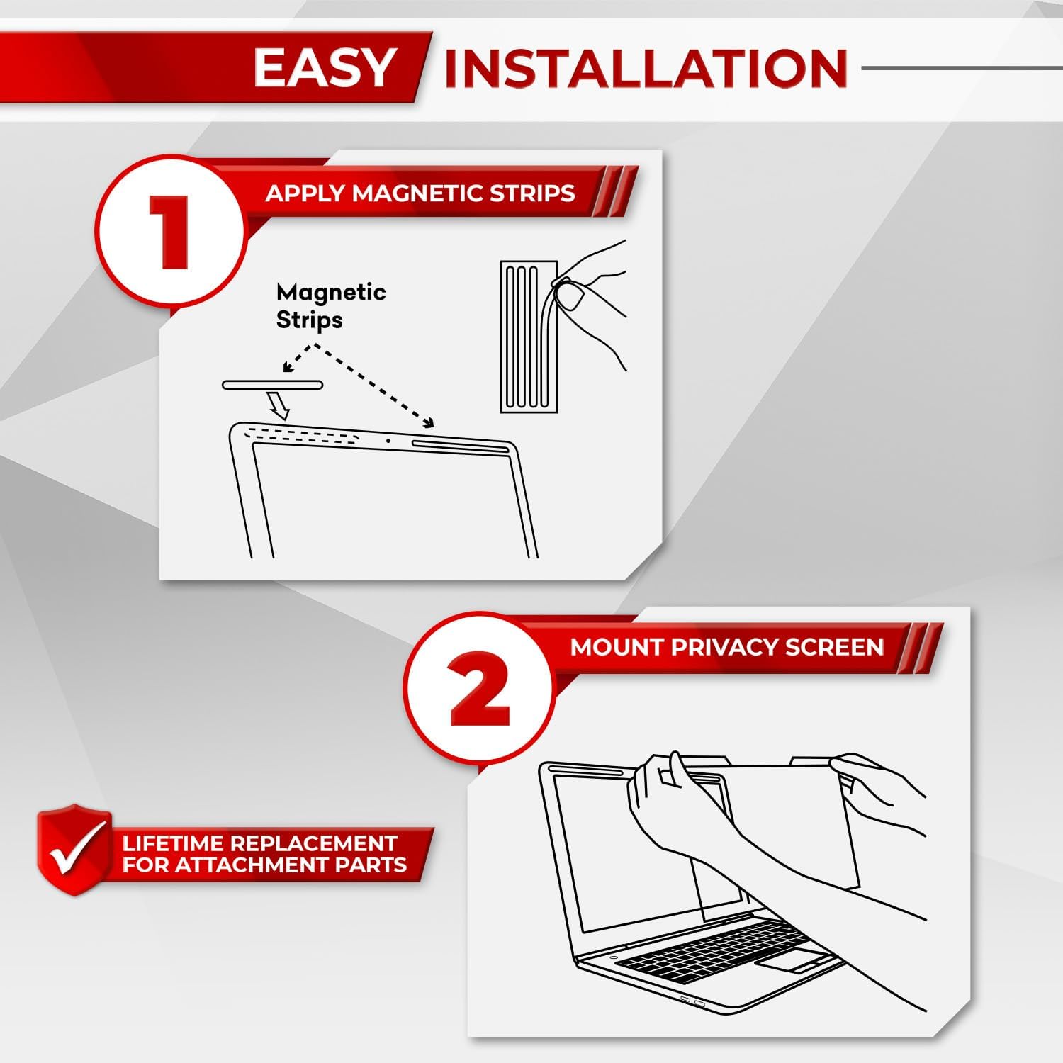 - 【Instant Snap-on Magnetic Attachment】- Simply place the privacy screen along the top of your laptop and let the magnets attach along the top. Easily remove and reattach when you need it. Please note, when the privacy screen is attached, your laptop may not close completely, but the sleep mode is still supported.