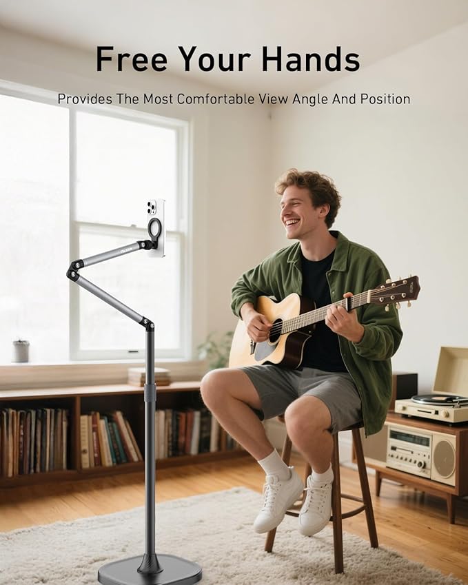 - Universal Rotation, Create to Your Heart's Content: The TELESIN° 2024 world premiere magnetic floor stand for recording and live-streaming is designed with a 360° bidirectional damped metal pivot, and the cantilever on the tablet floor stand can be freely adjusted to a variety of angles: vertical shot, horizontal shot, elevation shot, 360° panoramic shot, etc., easily become a good helper for your life, work shooting and recording.