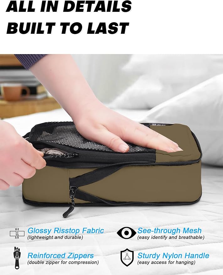 - Compressible & Space-Saving: With compression packing cubes, you can pack smarter and fit more into your luggage. Our two-zipper system packing cube could compress clothes and saves up to 40% space, so you can bring everything you need without the extra bulk