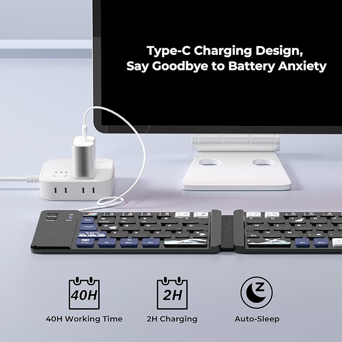 - 🌊【Long-lasting Battery Life】Equipped with a built-in rechargeable battery, our keyboard offers an impressive standby time of up to 6 months and around 40 hours of continuous use. Perfect for short business trips or vacations, you can rely on its longevity wherever you go.