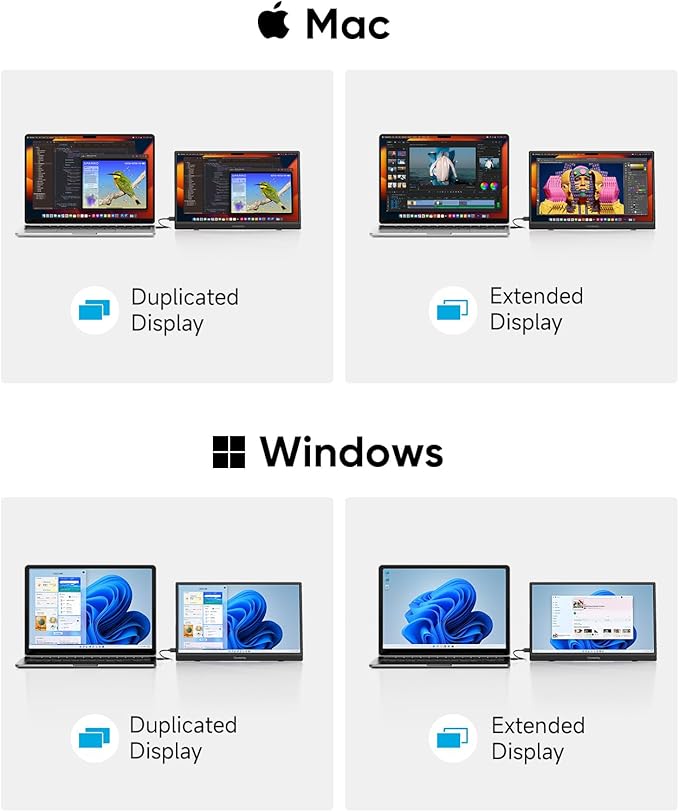 - 【Plug and Play Right Out of the Box】No complicated setup needed! This portable laptop monitor instantly connects as a second screen—plug it in and start using it. It works with most modern laptops via USB-C, so you’ll be ready to go in seconds. Note: Some laptops and phones without full-featured USB-C ports might need an extra USB-A to USB-C cable for power.