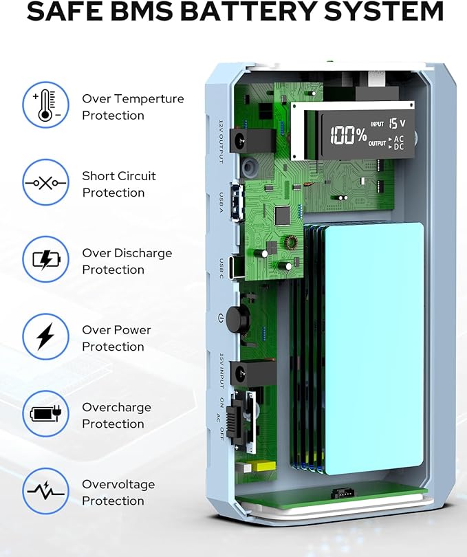 - 【LED Digital Display】The 24000mAh rechargeable power bank with ac outlet is equipped with a smart LED digital display, which can accurately record the remaining power level, making it easy for you to operate the power supply