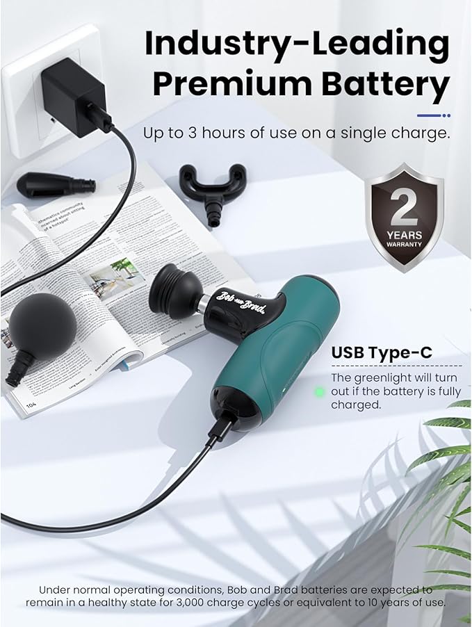 - 15W PD Fast Charging & Whisper-Quiet Operation: The Q2 Mini Massage Gun can be fully charged in just 1.5-2 hours using a fast charger (not included). The multifunctional USB Type-C port allows for charging with either A-C or C-C cables, making it compatible with any adapter or power bank for convenient fast charging. Whisper-quiet, it operates as low as 40 decibels, perfect for use at home, the gym, or the office without disturbing others.