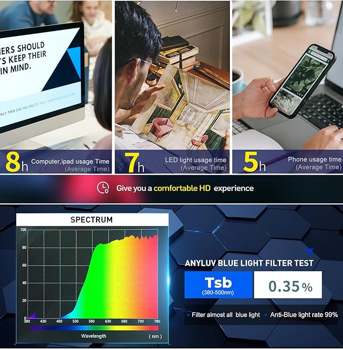 - 99% Blue Light Blocking Rate: These Blu-ray gaming glasses can filter out 99% of harmful blue light from computers and other devices. These gaming glasses for men are effective in relieving visual fatigue. When you're playing games on an electronic screen for a long time, these ANYLUV blue light glasses men gaming can help relax your eyes while improving your sleep quality