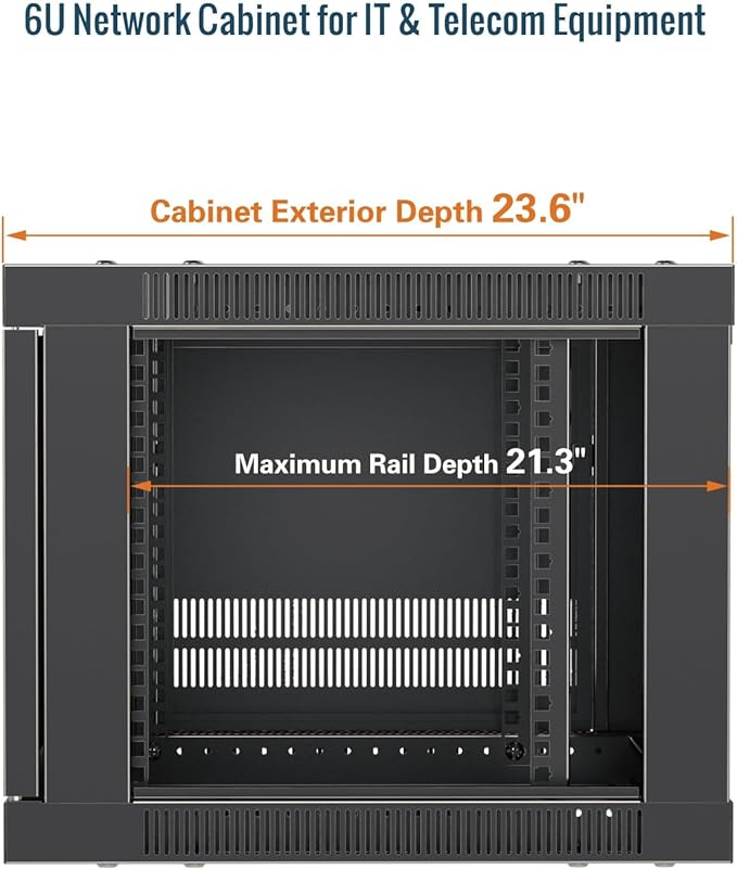 Tecmojo 6U Wall Mount Rack Cabinet, Heavy-Duty 176 Lbs High Load Capacity, 19” Enclosed Server Network Rack with Glass Door, 23.6” Deep – Elite Collection
