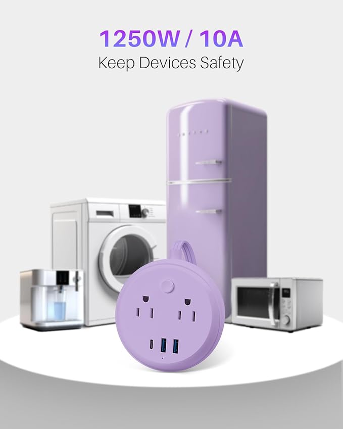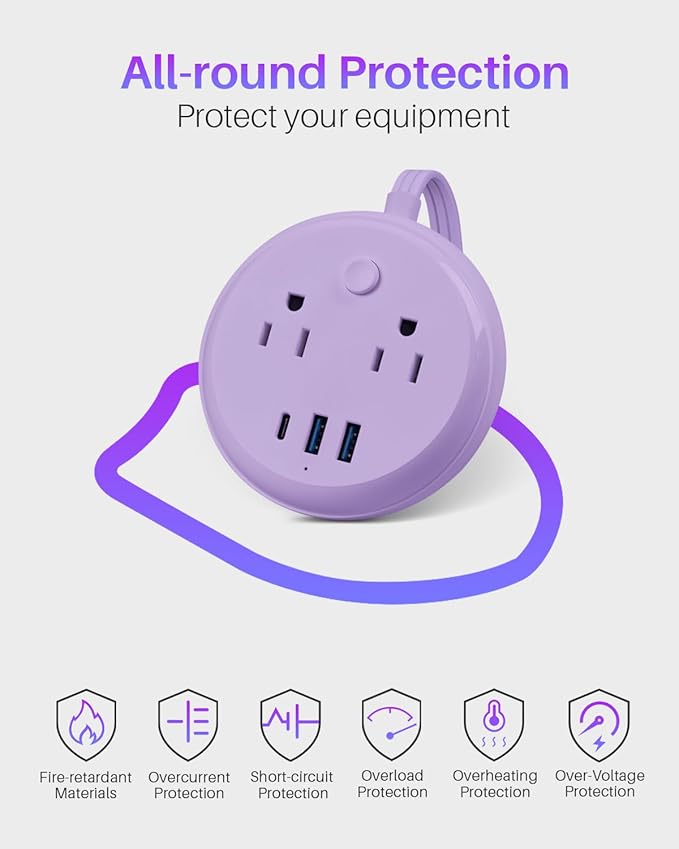 - Power Strip with USB C - It features 1 USB-C port (up to 5V/3A -15W) and 2 USB-A ports (up to 5V/2.4A -12W each), totaling 15.5W Output, automatically detects connected devices and optimizes charging speeds, offering versatile charging options. Idea for USB devices like cell phone, tablet, earphone, etc.