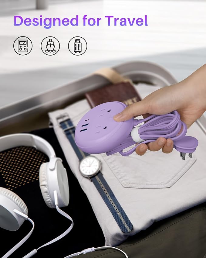 - Power Up to 5 Devices - With 2 AC Outlets, 1 USB-C Port, and 2 USB-A Ports, you can power and charge up to 5 devices, keep your desktop organized. 10 Ft Slim Extension Cord (1250W/10A), sturdy and durable. Plug Design for easy unplugging and plugging.