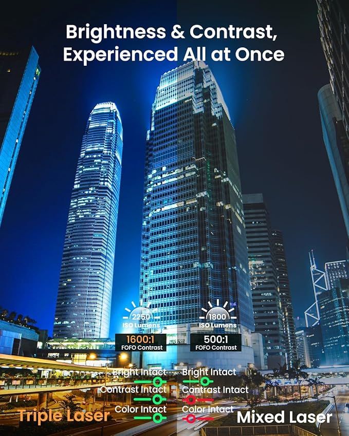 - [Dazzling Brightness]:2250 ISO lumens deliver vivid, clear visuals, bringing every detail to life. Every scene pops with clarity and brightness, even in well-lit rooms and backyard.