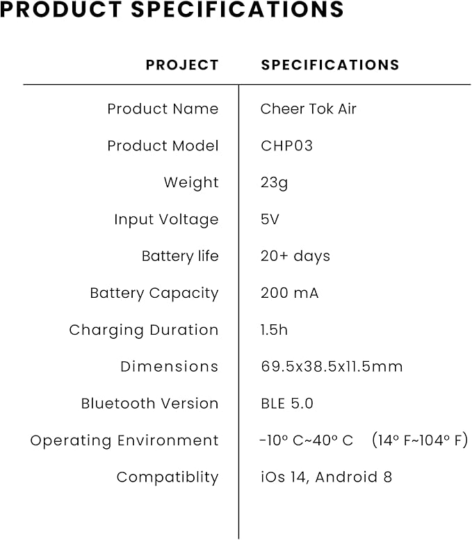 - Wide Compatibility: CheerTok Air is compatible with iOS 14 or above, Android 8 or above, can connect to almost all smart devices with Bluetooth connectivity. If you encounter any issues, our 24/7 after-sales service will be available to provide you with the best solution