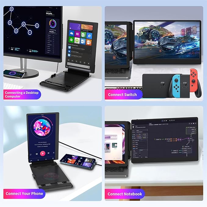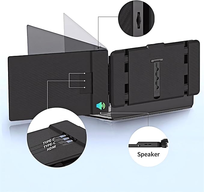 - [Portable Design for Easy Use] This laptop monitor extender operates seamlessly with a plug-and-play mechanism, providing all necessary cables for Type-C and HDMI connectivity. This laptop screen extender monitor is portable and designed for on-the-go professionals. The Dual monitor for laptop supports a 178 degree rotation angle and folds compactly for easy storage in your computer bag. Perfect choice for work, travel, business trip, gaming or video conferences.