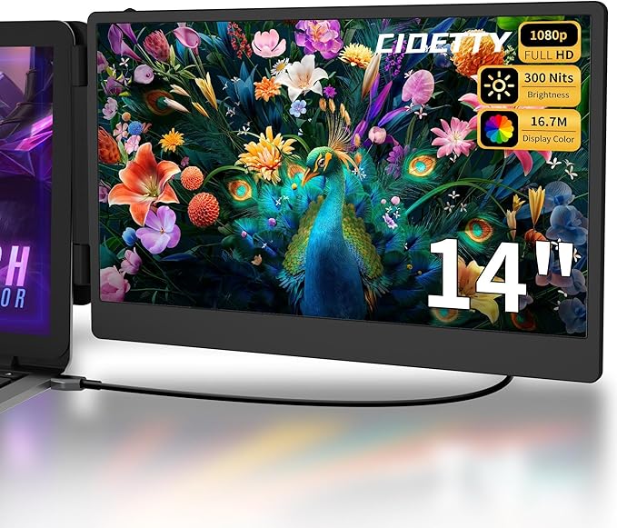 - [Dual screen, Double efficiency] The Cidetty portable monitor is the perfect laptop screen extenders for your laptop, allowing you to open multiple windows simultaneously without switching back and forth continuously on a single laptop screen, improving your efficiency by up to 200%. With this screen extender, you can easily build your own working station anywhere. Very suitable for conference presentations and multitasking. Perfect for gamers, programmers, finance and investment professionals, designers, and anyone who needs more efficient workflows.