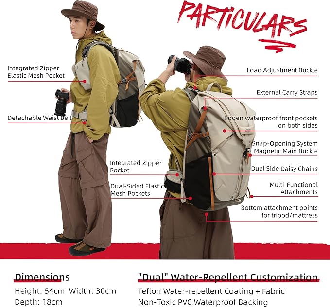 - One Backpack, Endless Adventures: Customizable compartments adapt to photography, hiking, camping, or daily commuting. Expandable design grows from 25L to 33L (or 35L to 43L), giving you the flexibility to carry everything you need—without ever switching bags.