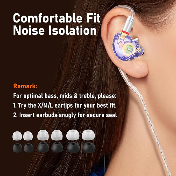 - COMFORTABLE FIT & NOISE ISOLATION - Ergonomically designed to fit the ear canal, Vibes 202M IEM headphones feature preformed over-ear earhooks for a secure fit and keep cables out of the way. With 6 pairs of soft, breathable eartips (in 2 colors and 3 sizes), they ensure optimal comfort and stability while effectively blocking ambient noise for immersive listening.