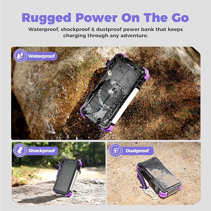 - Durable And Adventure-Ready: Built to withstand anything nature throws at it, the BLAVOR solar charger power bank is a true warrior. Its flame retardant ABS+PC shell and waterproof silicone protection make it waterproof, shockproof, and dustproof, ensuring it can handle extreme conditions with ease. No matter where your adventures take you, this charger is up for the challenge