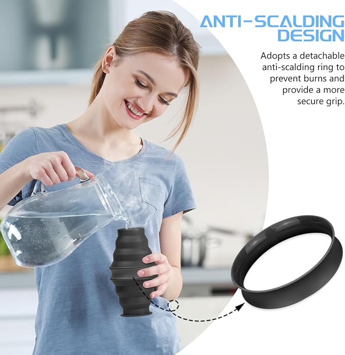 - Healthy & Safe Material: Made of food-grade platinum silicone, to ensure safe drinking and odorless. Suitable for water or drinks from -40°F (-40°C) to 446°F (230°C). We do not recommend using it for liquid which higher than 140°F (60°C) to avoid scalding your hand.