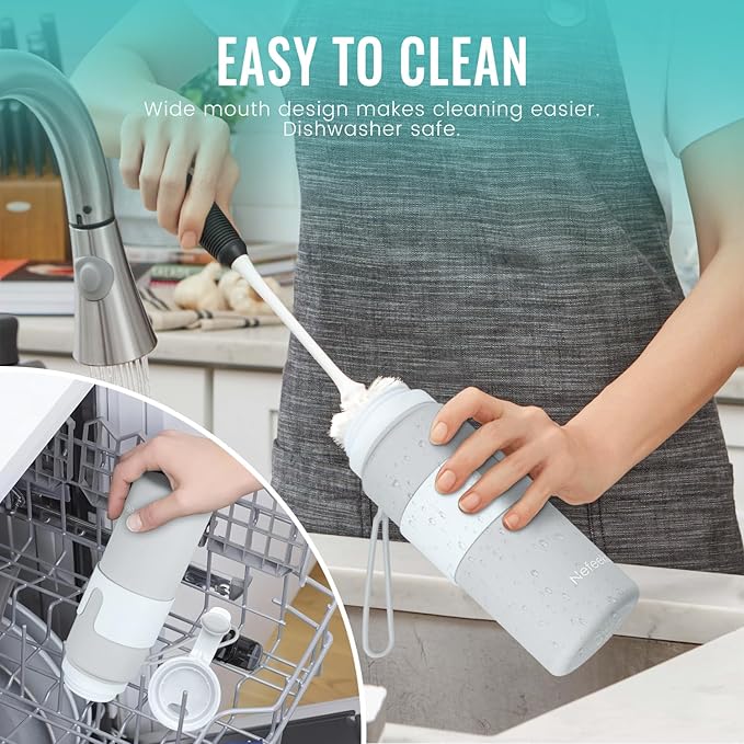 - SUSTAINABLE LIFESTYLE: Nefeeko collapsible water bottle is reusable, sturdy, and portable, reducing the need for single-use plastic bottles. It makes an ideal gift for families and friends.