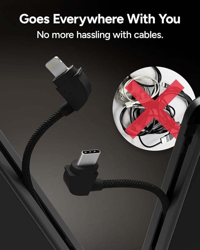 - MULTIPLE DEVICE CHARGING: Charge up to three devices simultaneously using the USB-C port and integrated Lightning and USB-C cables. This allows you to keep your smartphone, tablet, and other devices powered up at once, ensuring all your gadgets are ready to use