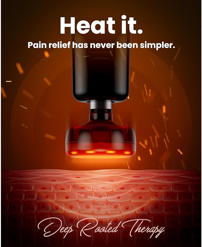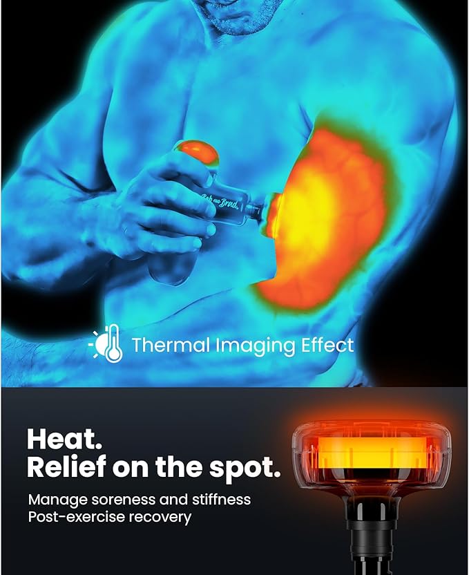 - Deep Tissue Massage Gun with Heat for Real Pain Relief: A massage amplitude of 7mm, to breaks up knots and relaxes tight muscles, digging deep and relieve hard-to-reach muscle groups. The heating therapy enhances blood circulation, which aids in faster muscle recovery and deeper relaxation. This dual action of heat and massage effectively alleviates stiffness and soreness, making the experience more therapeutic and satisfying.