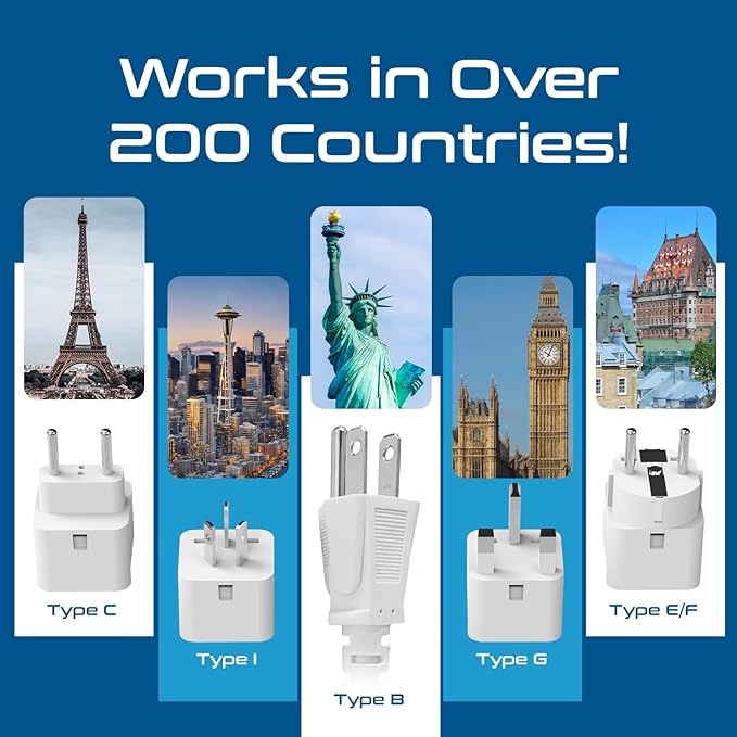 - [Travel Converter w/ 4 Attachments]: This 220 to 110 voltage converter is compatible with outlets in over 150 countries with Type C, E/F, G, I plug attachments, making it ideal for use in Europe, Asia, Australia, or Africa. Perfect for powering your travel essentials.