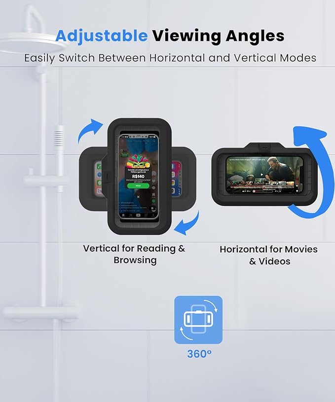 - 100% Waterproof Protection: We've completely redesigned the product structure with advanced sealing technology to ensure your phone remains untouched by water during showers. Whether you're bathing, washing, or simply using your phone in the bathroom, this shower phone mount case offers unmatched waterproof protection