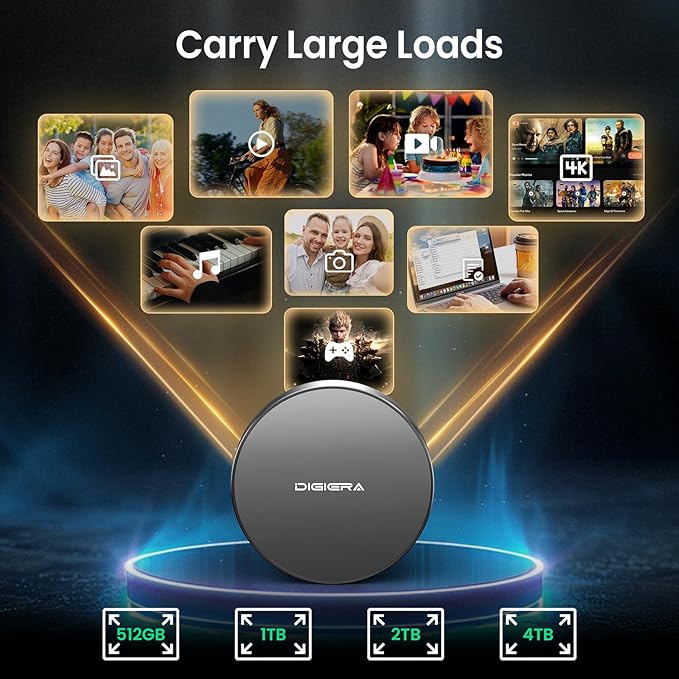- Wide Compatibility for Effortless Integration: The DIGIERA solid state drive features universal compatibility with a USB Type-C interface, working seamlessly with laptops, tablets, gaming consoles, and most smartphones. Its plug-and-play functionality means instant access for students, freelancers, and multitaskers on the go. NOTE: Only compatible with iPhone 15 series and newer. Not compatible with iPhone 14 and earlier models
