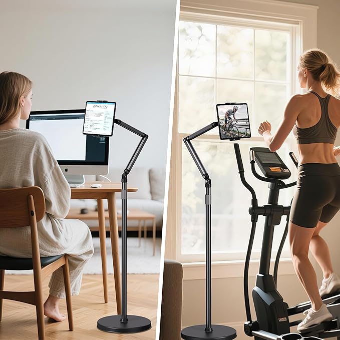 - ADJUSTABLE HEIGHT: Features a telescope pole, and plus 2 folding arm, the height can be adjusted from 12" to 51". Ideal for stand reading, exercise or sitting, laying down on bed.