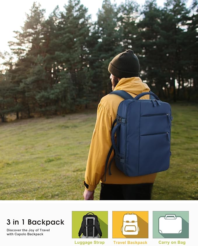 Capolo Travel Backpack for Women Men Waterproof Laptop Backpack Airlines Approved Carry On Backpack Bag Computer Backpack for Business, Work, Traveling Fits 17 Inch Laptop(Dark Blue)
