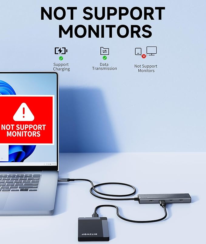 - 【Compact USB C 3.2 Gen 2 Hub】Aceele's USB C Hub Splitter features 4 USB C data ports, this USB C Adapter multiport allowing simultaneous use to meet daily needs. NOTE: This USB C hub multiport adapter is designed for data transfer only, none of the ports support external monitors.