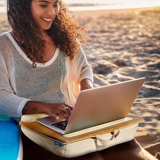 - Conforms to You: The microbead-filled pillow cushion adapts to your lap, offering superior comfort and stability on the go.