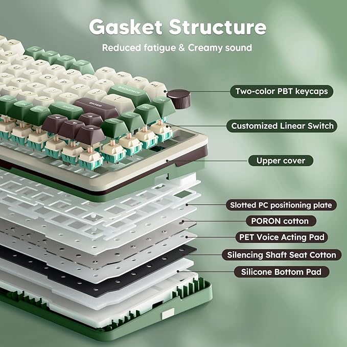 Redragon K681 Pro Wireless Mechanical Keyboard, Gasket Mounted RGB Gaming Keyboard with Volume Knob, MDA-Profile, Pre-Lubed Linear Switches, 81 Keys 75% Tri-Mode Hot Swappable for PC/Xbox/PS (Matcha)