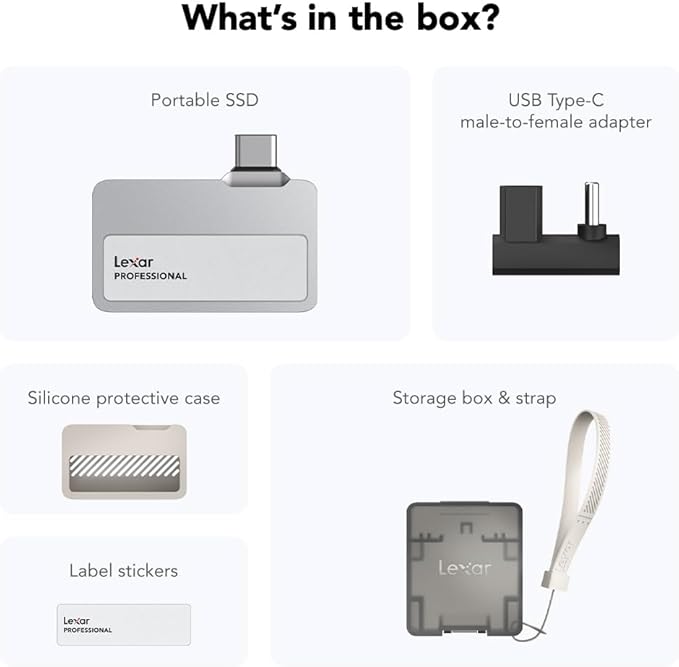 Lexar 1TB Professional Go Portable SSD, Supports Apple 4K 60fps ProRes, Up to 1050MB/s, USB 3.2 Gen 2, Rugged, IP65, Ultracompact, Compatible w/iPhone 15/16, External SSD (LSL400X001T-RNSNU)