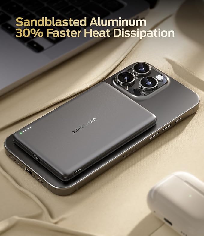 MOVE SPEED 0.3'' Ultra Slim MagSafe Portable Charger, 5000mAh Magsafe Battery Pack iPhone 17 Air Accessories, Magnetic Power Bank with USB C Port for iPhone 17 Pro Max Air/16/15/14/13/12, Glacier Gray