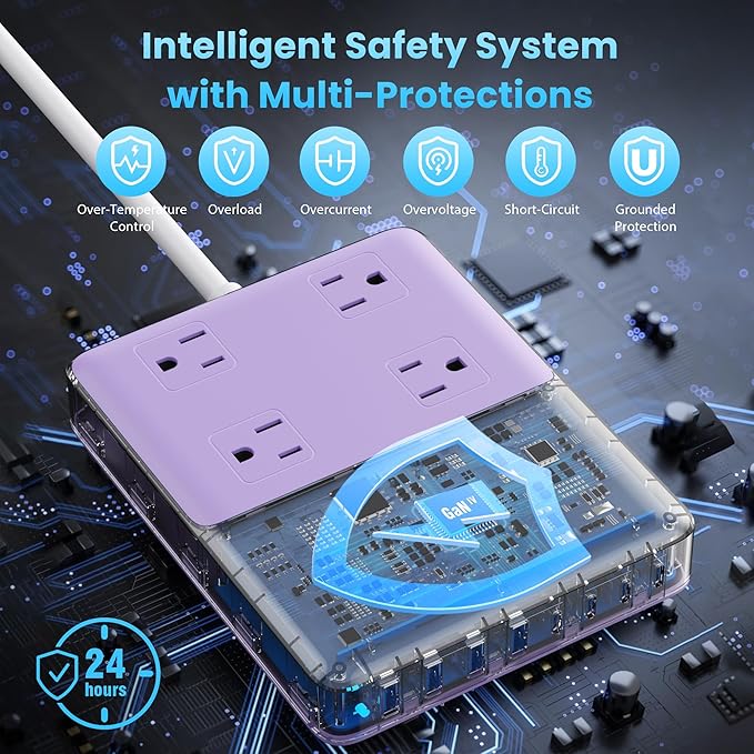 12-in-1 Charging Station USB C Power Strip with 5ft Cord,200W GaN IV USB C Charger Block,4 AC Outlets,4 USB-A,4 USB-C for MacBook,iPhone 16/15/14,Fast Charging Desktop Charger for Office (Purple)