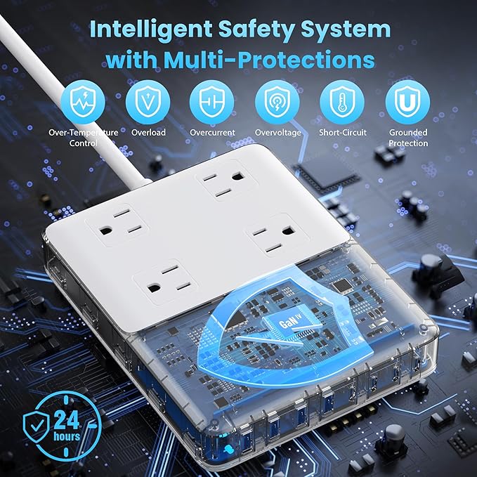 - 【Trustworthy Multi Plug Outlet Extender with 3 Years Warranty】Package includes USB C Fast Charging Station with 5ft undetachable extension cord (12-in-1, 200W), user manual, friendly customer service.