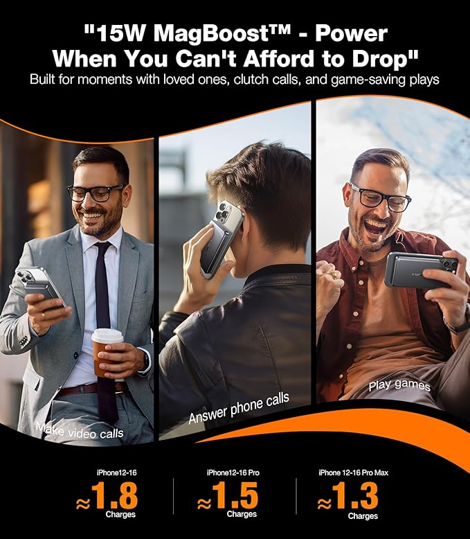 - 【Qi2 Certified for Ultra-Fast 15W Wireless Charging】Keep your devices fully charged wherever you go with 15W Qi2-certified wireless output, which charges an iPhone 15 Pro from 0 to 30% in 25 minutes.The power bank also features a 30W USB-C port, providing even more versatility for fast charging a wide range of devices, from smartphones to tablets.