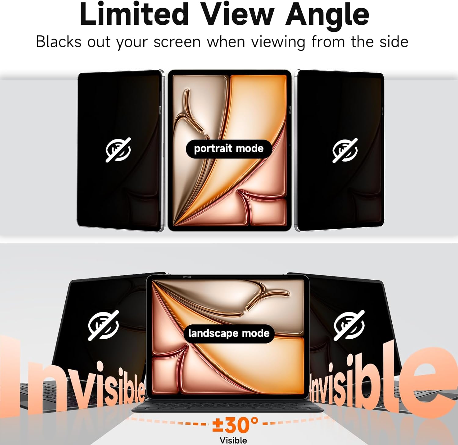 - 【Fits iPad Pro 11" M4 2024】Magicsuction Privacy Screen Protector exclusively designed to protect and perfectly fit your Apple iPad Pro 11" 5th M4 2024 ONLY, NOT compatible with any other devices. Please check the width and height dimensions of your surface screen before ordering.
