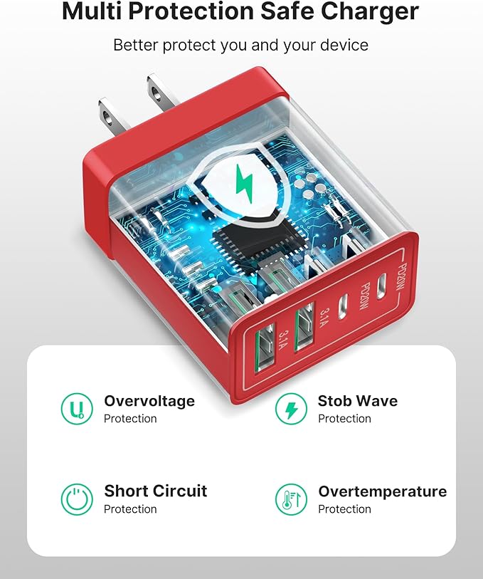 - Included Components : 2 * 40W 4-Port Wall Charger - Red