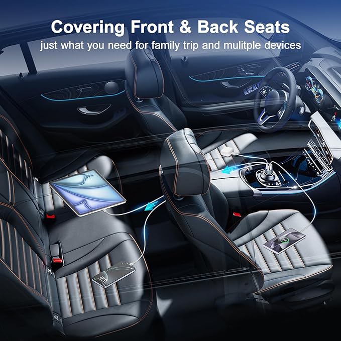 - Broad Compatibility: This 4-port car charger can charge most USB A and USB C devices. It’s compatible with iPhone 17 Pro Max/17Pro/17/ iPhone Air, iPhone 16 Pro Max/16Pro/16Plus/16/15 Pro Max/15Pro/15/15 Plus/14 Pro Max/13/12/SE/11/XR/XS Max/X/8 Plus/7; iPad Pro 12.6/11/10.5/Mini6/Air5/4; Galaxy S24 Ultra/S23/S22/ S21/S10/S9/A54/A53/A14/A13/A23/A15/Note, Pixel 7/6/5/4XL, dash cam and other car accessories.