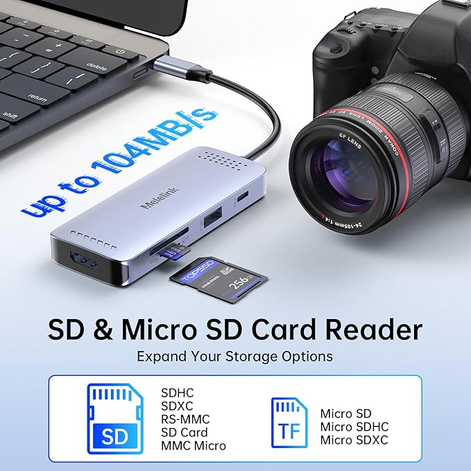 - 【8-in-1 USB-C Hub】The USB-C hub expands one USB-C port to 8 ports.1x HDMI (4K@60Hz), 1x USB 2.0, 2x USB 3.0, 1x USB-C (5Gbps), 1x PD charging (up to 100W), Micro SD/TF card reader slot.Plug and play, no need to install any driver. This usbc adapter is perfect for MacBook (2022-2024, M1/M2/M3), iMac, iPhone 15/16 Pro Max/USB-C Dell/Lenovo/HP laptops.