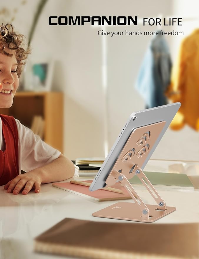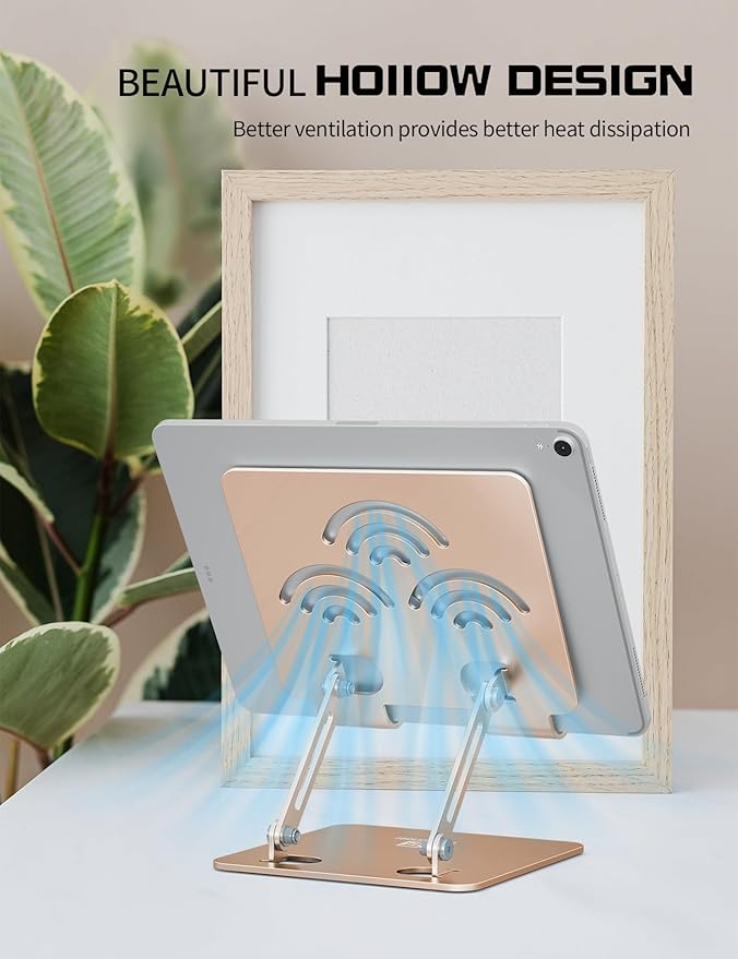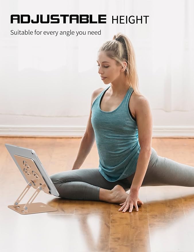 Tablet Stand, Adjustable Tablet Holder for Desk, Premium Aluminum Portable Holder for iPads, Kindle, Switch, and Smartphones, Fits 4-12" Devices Gold, Pro Size
