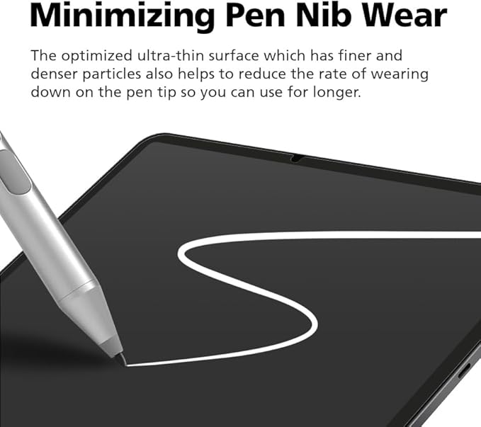 - 【FEELS LIKE WRITING & DRAWING ON REAL PAPER】 The premium paperfeel texture of surface makes you feel like paper, providing you with a wonderful and delicate writing and painting experience. Also it provides more resistance on the touchscreen than normal tempered glass which gives you more control and accuracy when drawing. The optimized ultra-thin surface which has finer and denser particles also helps to reduce the rate of wearing down on the pencil tip so you can use for longer.