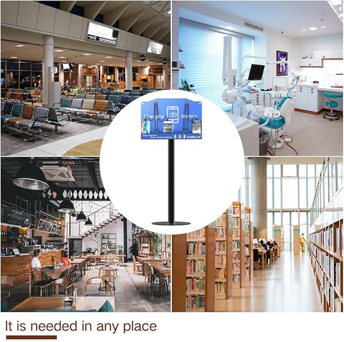 Floor Stand Cell Phone Charging Station for Multiple Device | 8 Charging Ports Charger Station | Compatible with Smartphone Tablets | Applicated for Library, School, Hotel, Shopping Malls, Airport