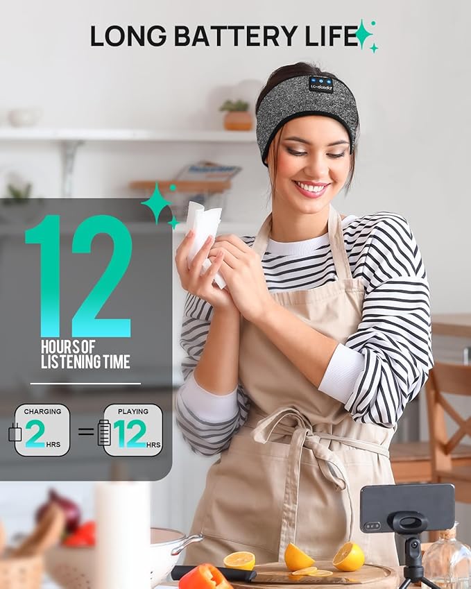 - 【Wireless Connectivity】 Bluetooth 5.4 and immersive stereo sound. With advanced Bluetooth 5.4 technology, the Bluetooth Headband is more compatible with electronic devices, making it convenient for bedtime music, podcasts, or white noise without tangled wires.