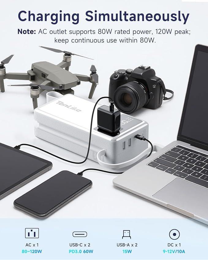 - 【Built-In 60W PD Fast Charging Cable】Our Tenlike power station features a built-in 60W PD fast charging cable, providing efficient charging for your devices. Quickly recharge your smartphone, tablet, or laptop, helping you stay powered up and connected when you need it most.