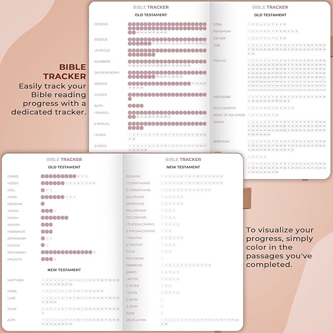 - MONITOR YOUR BIBLE READING PROGRESS – A dedicated reading tracker included in this notebook for Bible notes will help you track your reading progress easily. To use it, simply tick off each verse you complete.