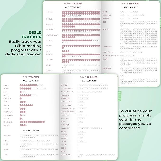 - MONITOR YOUR BIBLE READING PROGRESS – A dedicated reading tracker included in this notebook for Bible notes will help you track your reading progress easily. To use it, simply tick off each verse you complete.