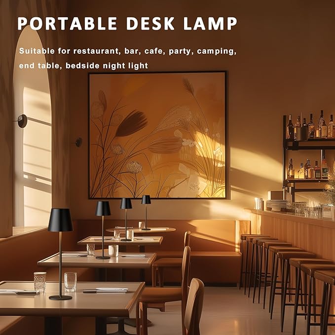 - Portable Battery Operated Lamps Set of 4: With built-in high capacity 5000mAh powered battery, and in a fully charged status, the rechargeable table lamp can be used continuously for 8-40 hours, depending on the brightness maintained. And no need to worry about the low battery situation as the cordless lamp will be fully charged in 4-5 hours with the included USB-C charging cables. The cordless desk lamps rechargeable are no need to change battery for your convenience and environmental friendly