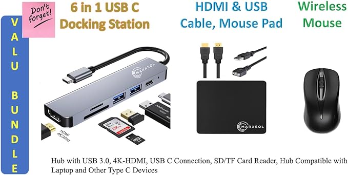 - 【Authorized w/MarxsolBundle + Micorsoft Office 365】MarxsolAccessory includes 6-in-1 USB-C docking station hub, USB extension cord, HDMI cable, mouse pad, and wireless mouse for your daily work and life. Enjoy 1 year Microsoft 365 subscription. Your creativity now gets a boost with Microsoft 365. Office - Word, Excel, and Power Point - now includes smart assistance features