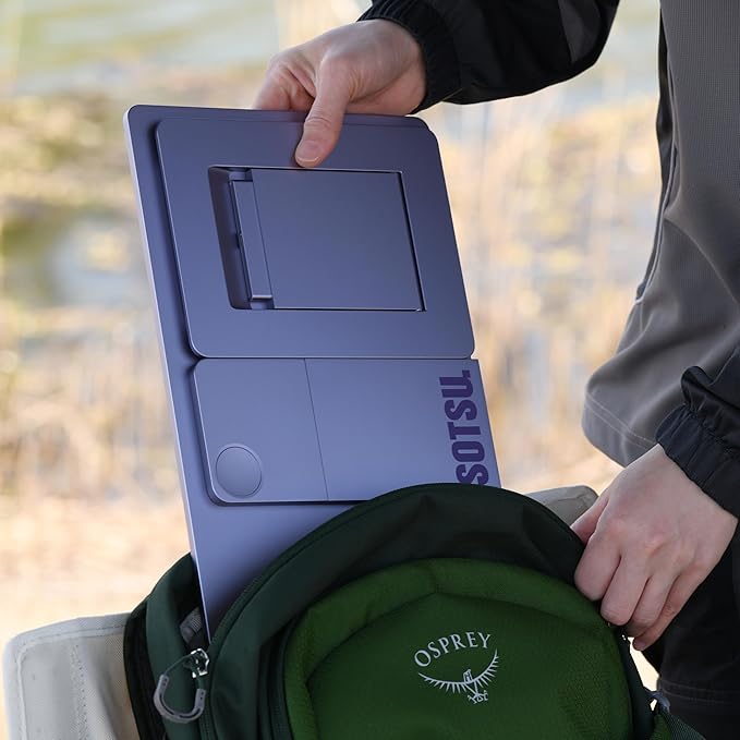 - PACK FLAT WITH STAND - SOTSU portable monitor for laptop features a base stand that seamlessly magnetizes onto the back of the screen when collapsed. With a folded unit thickness of just half an inch, packing and traveling have never been more convenient.