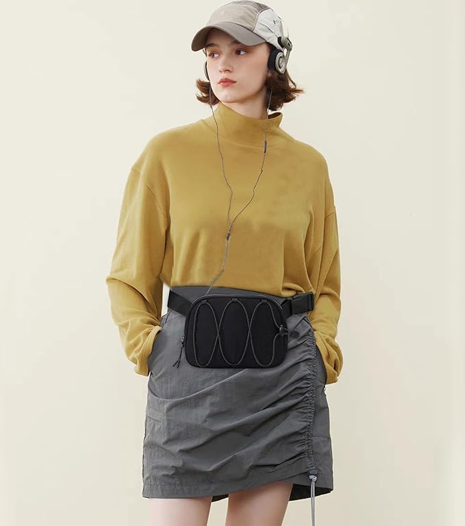 - Security Design: The small belt bag have a reflective bungee cords to be seen while running or walking at night or during bad weather. And hidden back zipper pocket is perfect for safely storing your valuables.Perfect travel must be have